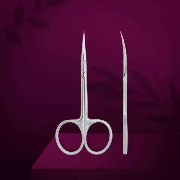 Dit rechte manicure/nagelriem schaartje met klassieke gebogen vorm van de snijbladen heeft een lengte die geschikt is voor handschoenmaat M/L.